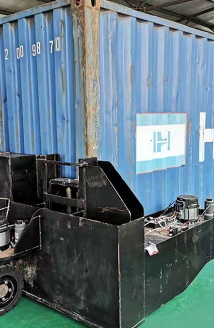 采用 2 臺集裝箱搬運機器人聯(lián)合工作形式,采用組合式全方位 萬向的四輪電驅動四輪電轉向的運動方式,動力供應由蓄電池組提供能量。 本項目產品為一套集裝箱搬運設備